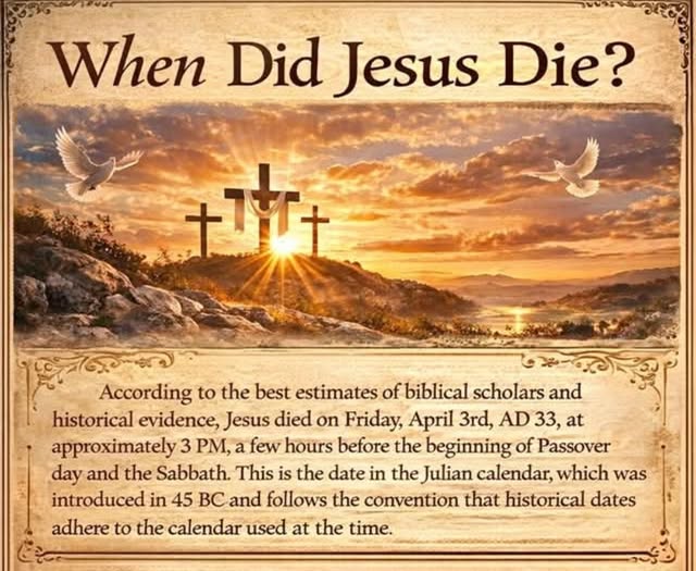 April 3, AD 33 is widely considered one of the strongest candidates for the actual date of Jesus’s crucifixion, and 2026 comes unusually close to replicating the same calendar pattern. Multiple independent lines of historical and astronomical evidence converge on Friday, April 3, AD 33 as a highly plausible date.